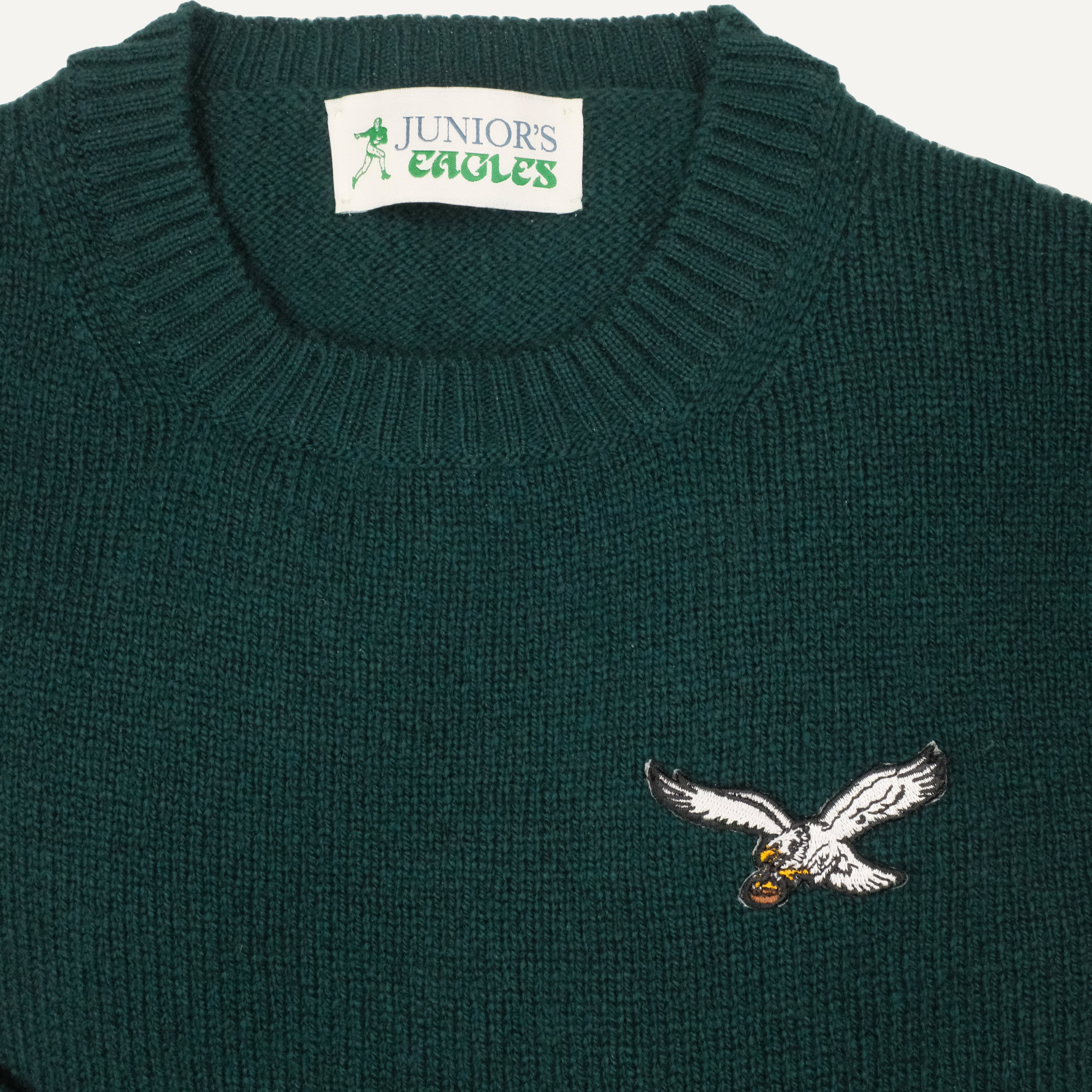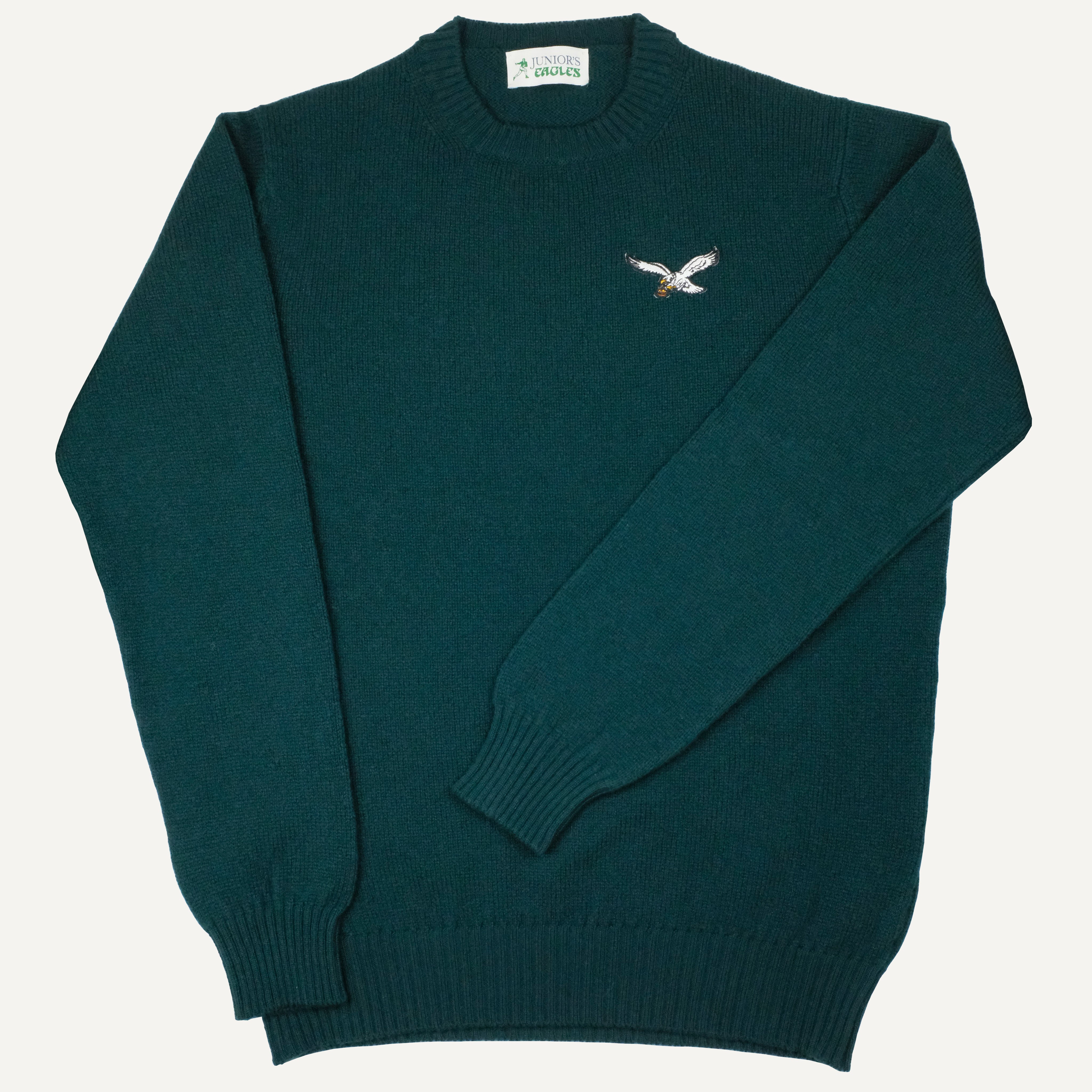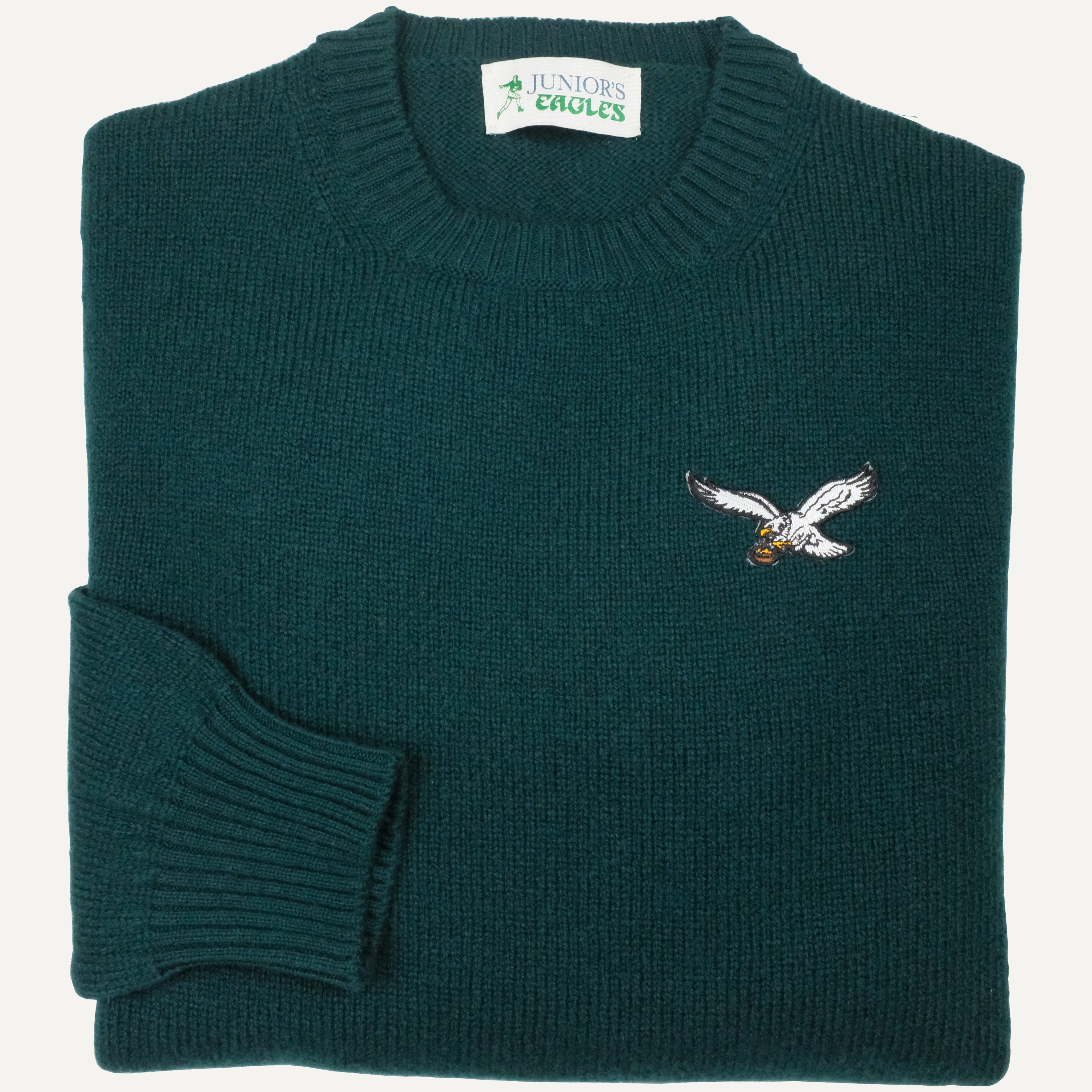A hometown collaboration! At the core of nearly all Philadelphians is a uniting admiration for their football team, the Philadelphia Eagles. At any given chance, fans across Southeast Pennsylvania, and beyond, are eager to show their love for our team. One way to show that passion is through what we wear. This is where our expertise at Junior's enters the equation. Working with some of the best craftspeople in the world, we create garments to stand the test of time. When the Eagles and Junior's merge, we create a subtle, unique and one-of-a-kind presentation of our endearment for the Birds. Combining historic logos from the Eagles with the quality of Scottish lambswool is a match made only in Philadelphia.