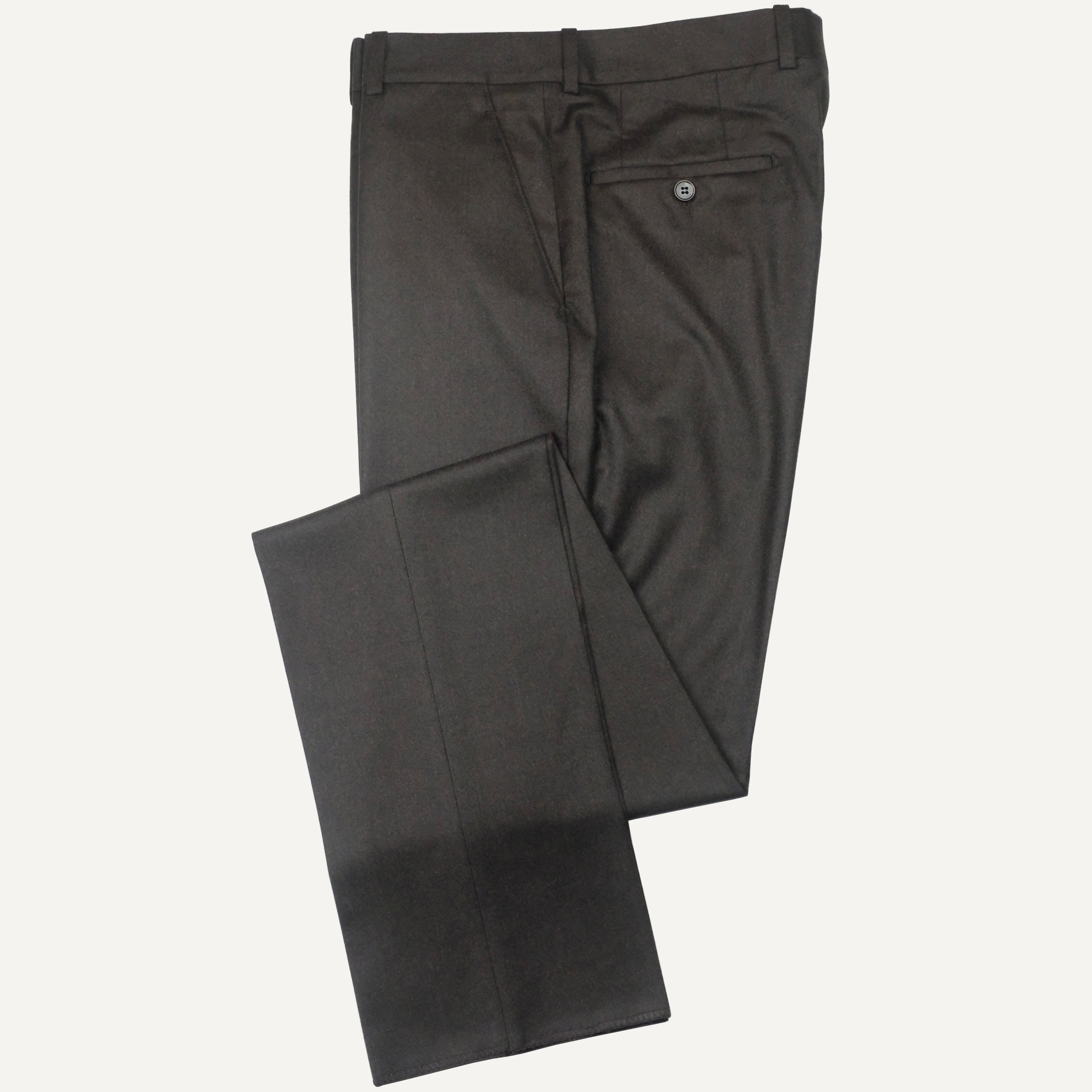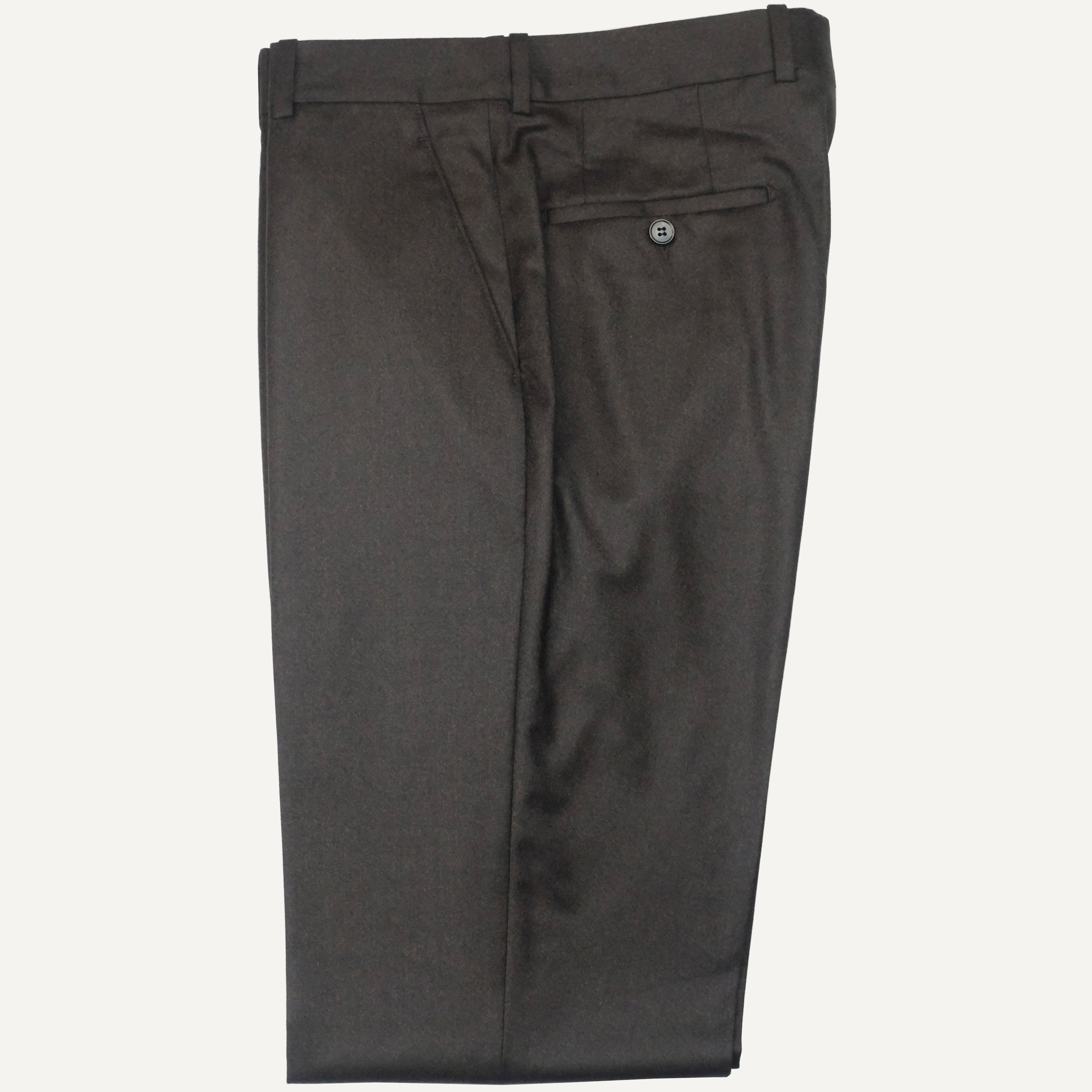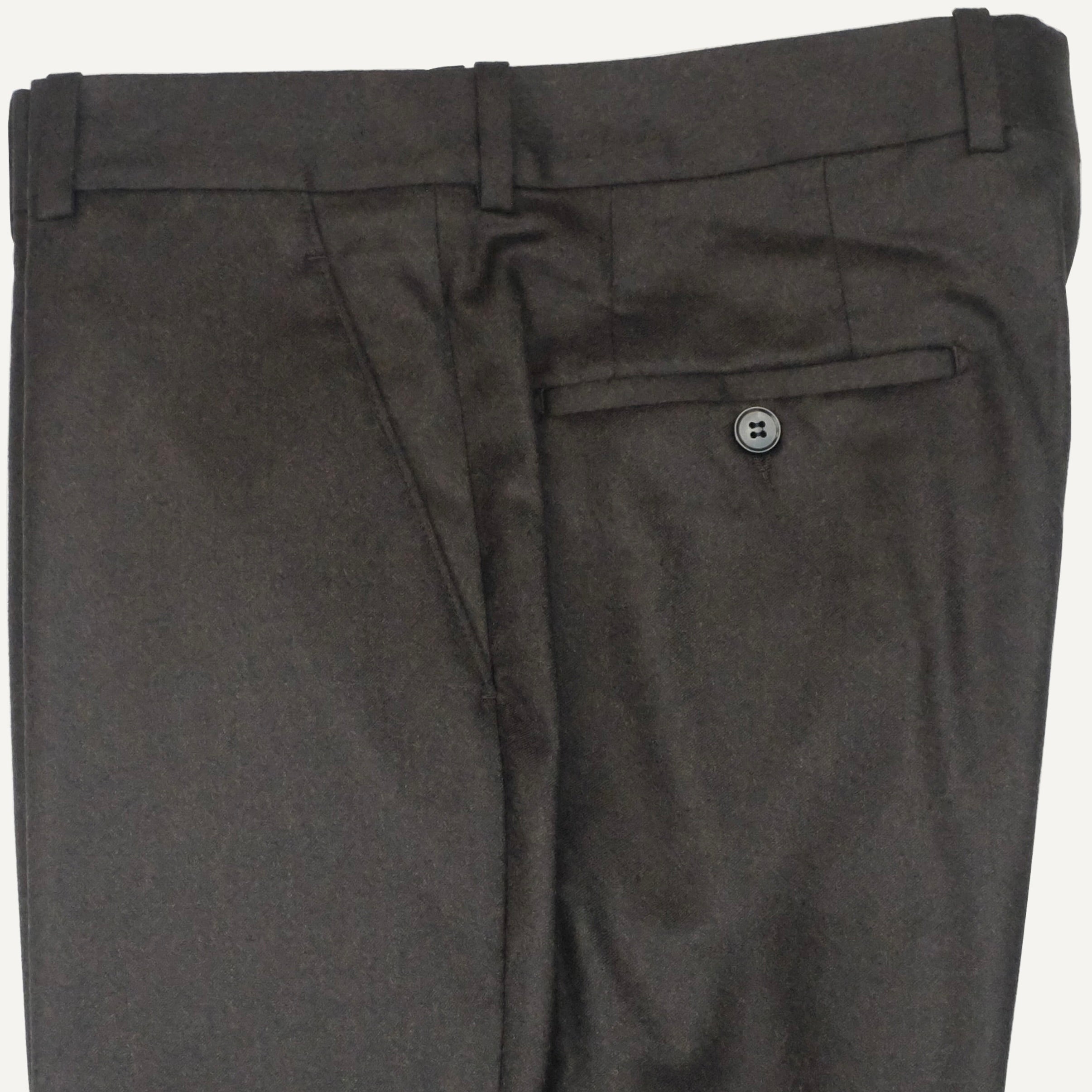 At the core of every cold weather wardrobe should be a plush, simply styled, all wool, flannel dress trouser. Similar to the way we think of the navy blazer as the go-to color for a sport coat, foundational trouser colors like grey, brown, tan & charcoal grey fall into the same category of versatility. Made for Junior's in Canada with 100% wool flannel from the esteemed Italian mill, Vitale Barberis Canonico, our flannel dress trousers are ideal for building a work week wardrobe for Fall & Winter but, they can also be worn casually with sport shirts, sweaters & other knitwear on the weekends or nights spent out in the city. The proper rise sits at the natural waist elongating your height in conjunction with the clean, not-too-full nor too-trim leg shape down to the bottom of the trouser. Finish them off with our recommended slight to no break and 1 3/4" cuff for a look that will stand the test of time.