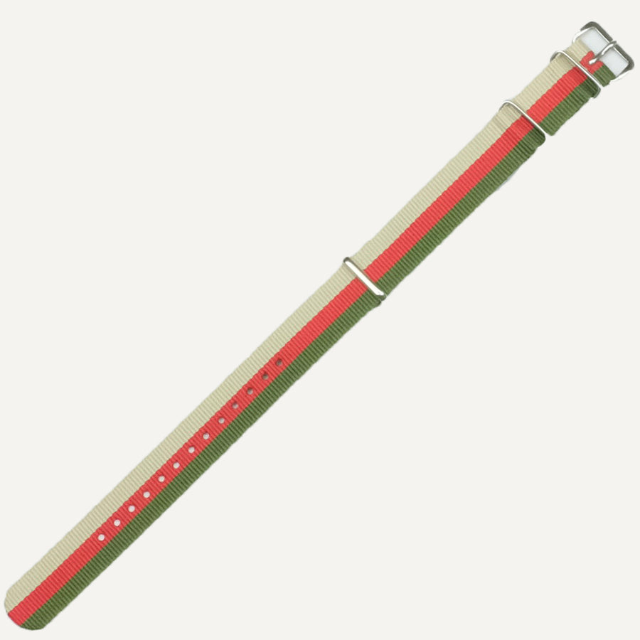 Black with Burgundy & Green NATO Watch Strap - 18mm