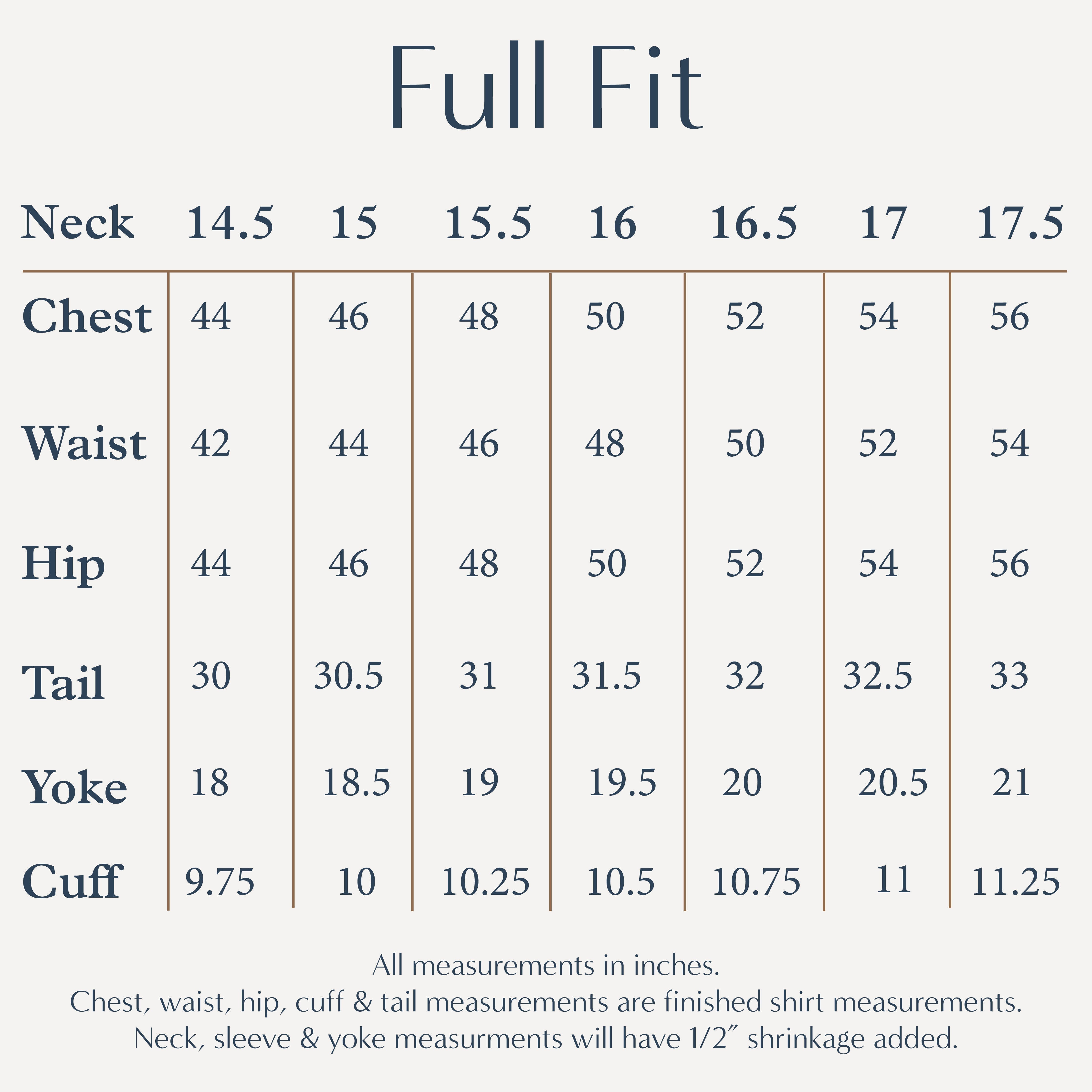NOTE: Made-to-Order shirts are semi-custom garments and will take 4 to 6 weeks to arrive. In addition, because the shirts are semi-custom, they are a Final Sale with no returns or exchanges. Please be sure you are ordering the correct sizing and fit.