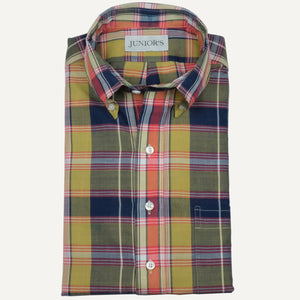Burgundy, Blue & Grey Stripe Button-Down Sport Shirt