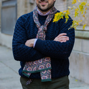 Like most great clothing we admire, Irish Fisherman Knits were born out of pure functionality. Along with their thick knit body, warmth and water repellency provided by the heavy Irish wool, the (unproven) legend goes like this: Fishermen bound for the sea near the Aran Islands to work and provide for their loved ones were often knitted a sweater, much like these, with a unique pattern to symbolize and identify with their family. The beautiful pattern we see and most often associate with these knits also had a more dreadful significance, too. In the event of a fisherman gone overboard at the high seas, the distinctive pattern was used to identify men in the event of drowning. Although this tale has never been proven, the sweaters do still provide us with the most important function and that is undeniable warmth. This hefty Irish wool is 100% virgin Sheep's wool and, often times, can still have a hint of the smell of the farm the Sheep were raised upon. Styling Irish Fisherman Sweaters is simple and similar to our other favorite knits, like Shetland. We often wear them with sport shirts or OCBDs and trousers from wool flannels, worsted or more casual options like corduroy and canvas. Add an Irish Fisherman to your knitwear rotation and add a story to share, too.
