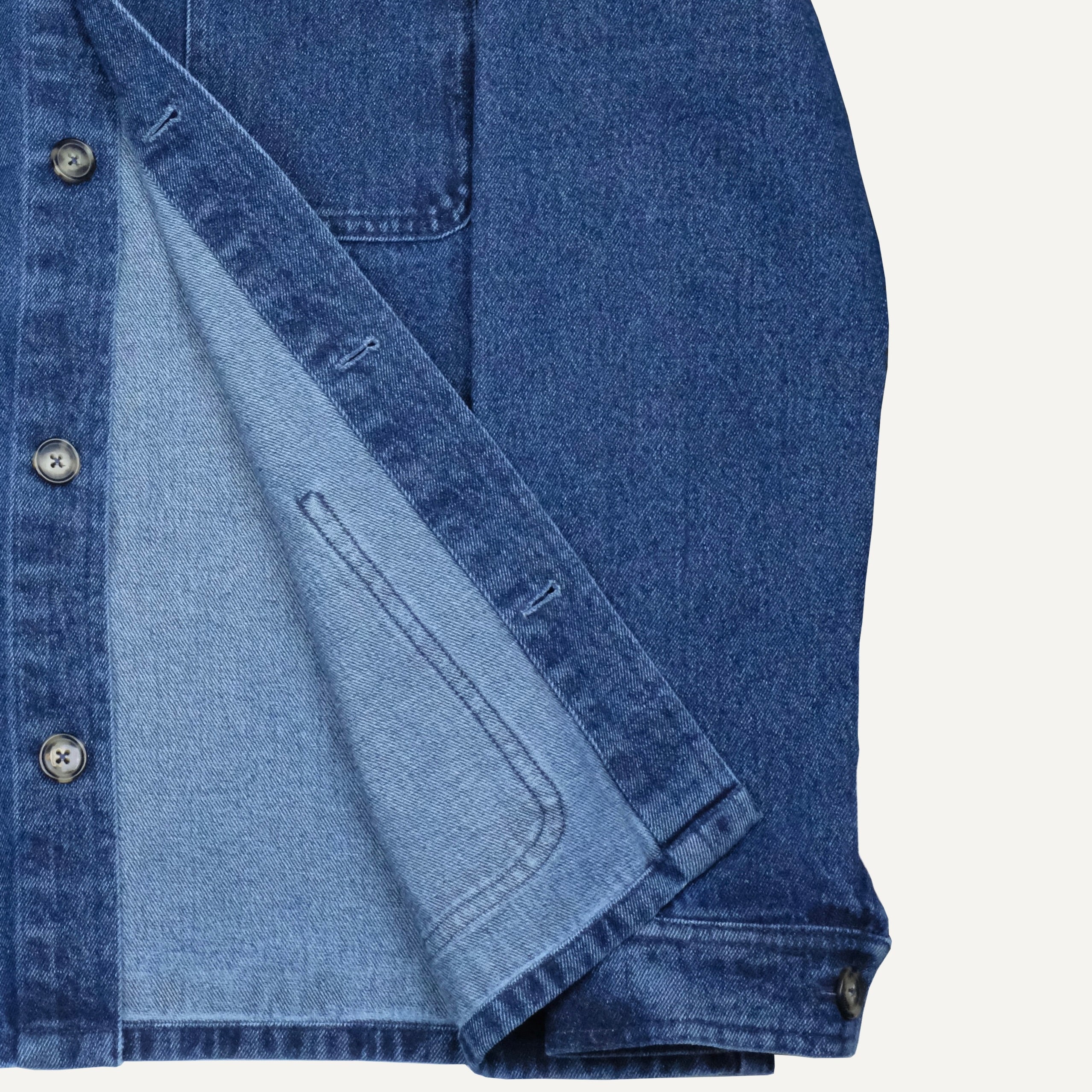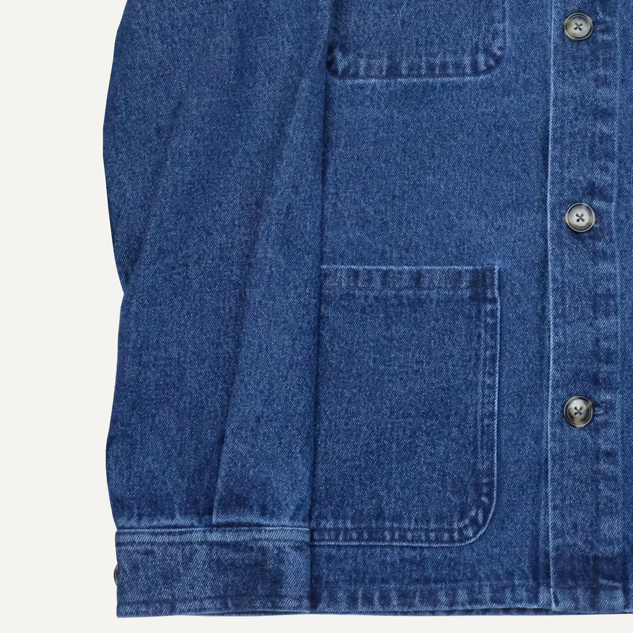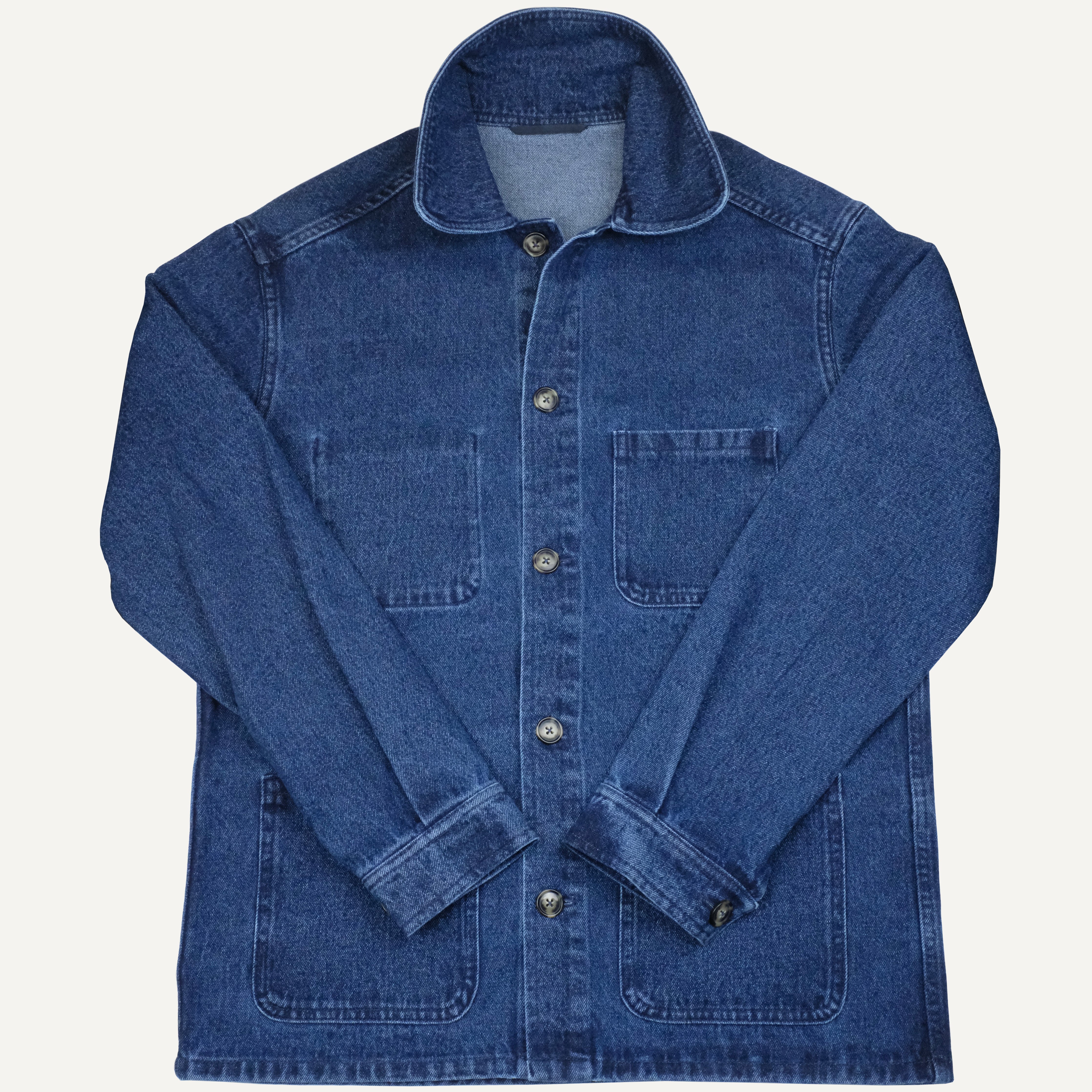 After your trousers, shirt, shoes and accessories, we can often be left feeling like one piece is missing to complete our look. An easy choice would be to toss on a sport coat or our trusty navy blazer. But, sometimes those options can be a bit too formal while we strive to look more relaxed and comfortable in certain environments. Insert our work jacket, now in this medium wash, 20 ounce, 100% cotton denim... This mid-weight cotton denim jacket is ideal for the weekends, a casual night out, a day spent at the park or for raking the leaves. The mid wash blue color is familiar to us all and makes this work jacket a simple substitute for our sport coats but still has plenty of style, all of the pockets to keep our essentials and a larger than average collar to help protect us from a chilling wind or the relentless sun. Plus, when it comes to denim, we can't wait to see how it ages with wear, washing and everyday use. We can't think of a place we wouldn't wear this jacket. The park, the office, and the cafe all come to mind. The best part is that it will only get better with age making it a go-to for years to come.