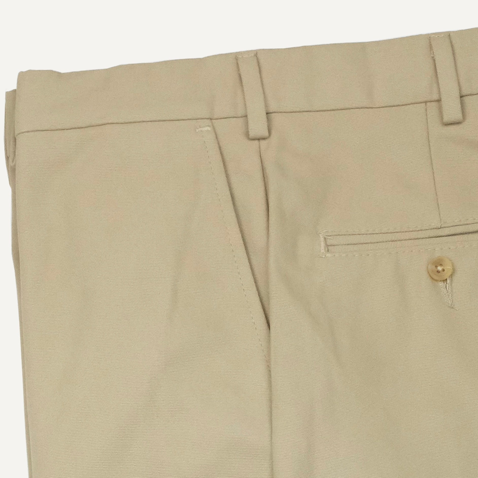 The thought for the ideal "dress up", "dress down" trouser has been top of mind for years. Finally, after many attempts and deciding one fabric versus another, cotton canvas won and for good reason too. Cotton canvas has a lot of the characteristics we like here at Junior's; It's durable, has visual interest and tactile interest with the distinct weave and lastly, it's not too dressy nor too casual. It walks the line perfectly to us, just like patch pockets on a navy suit. The fit, of course, is a big plus too. The proper rise accompanied by a clean leg line down to the appropriate leg opening makes for an above average fit. Take a look at notable traditional clothing book, "Ivy Style" and then give these a try and you'd fit right in on the Penn campus in 1959 as you would today on Market Street in Philadelphia.