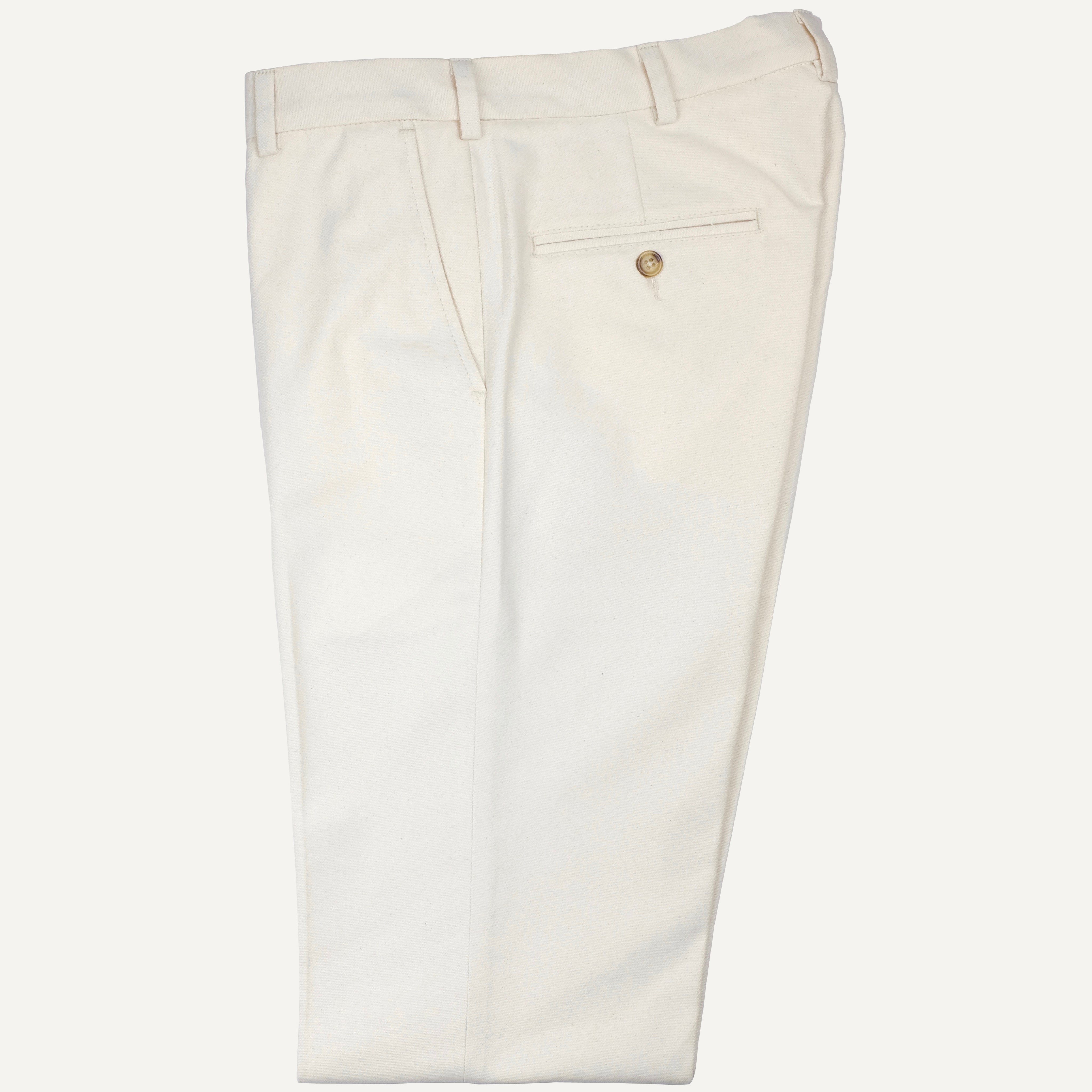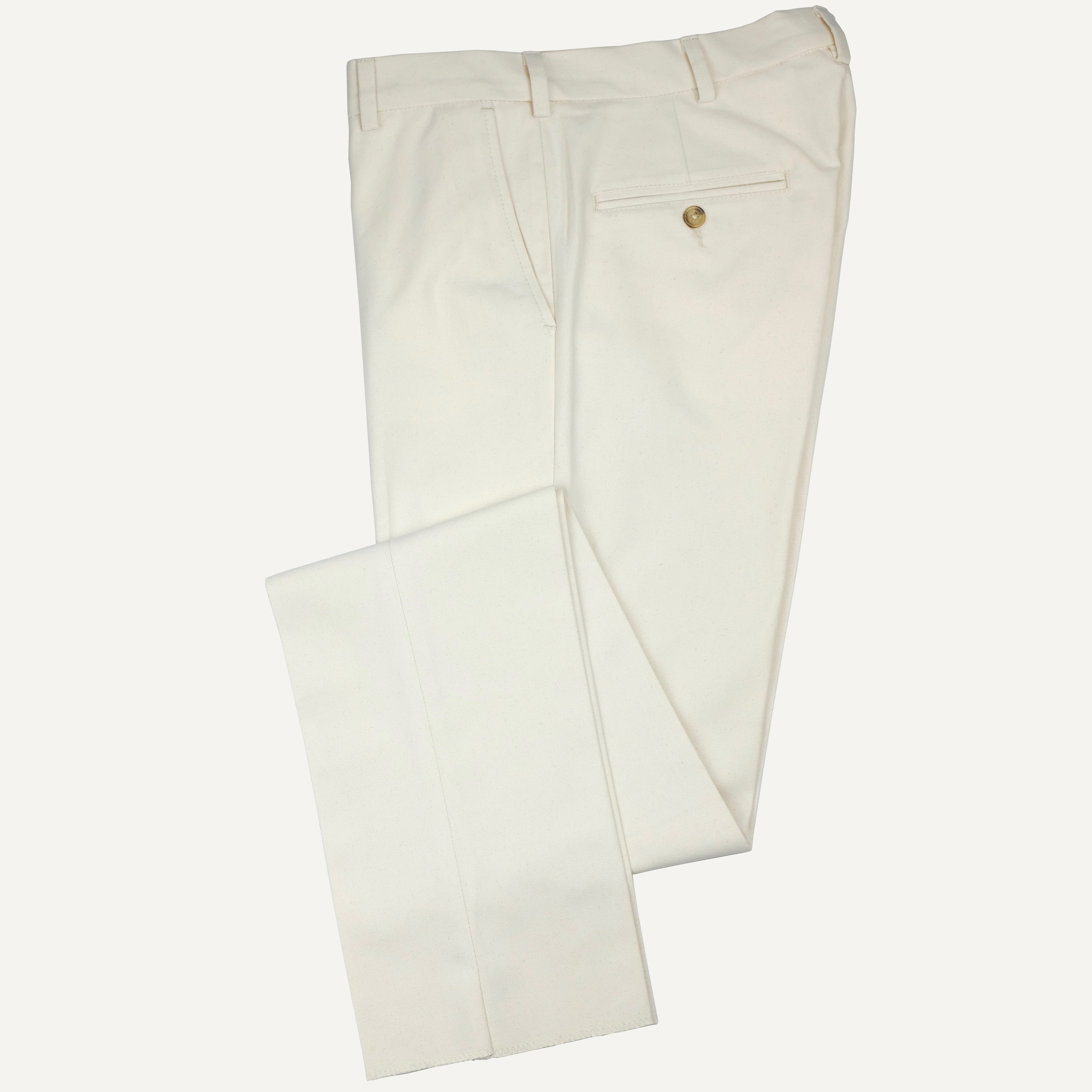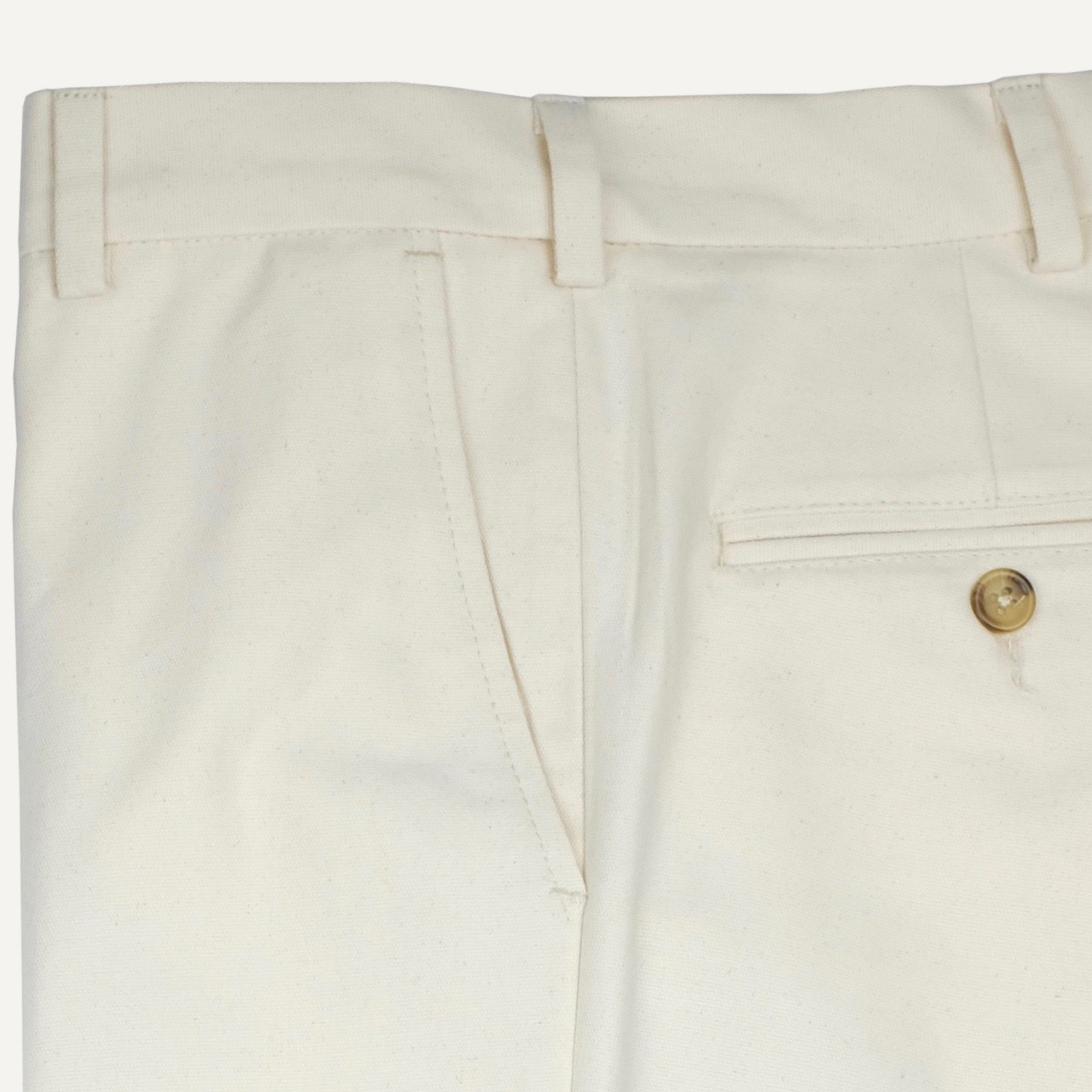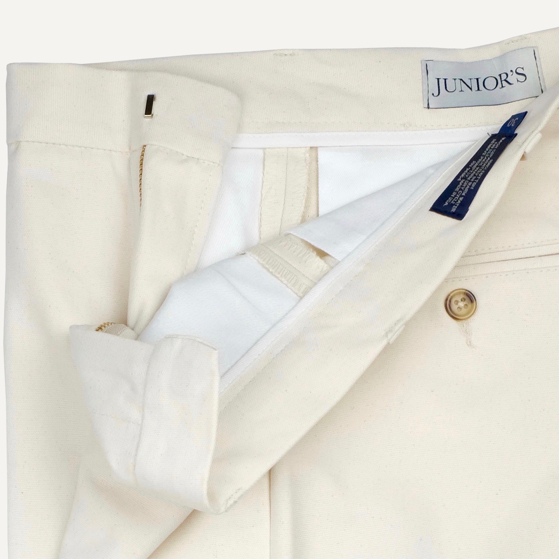 The thought for the ideal "dress up", "dress down" trouser has been top of mind for years. Finally, after many attempts and deciding one fabric versus another, cotton canvas won and for good reason too. Cotton canvas has a lot of the characteristics we like here at Junior's; It's durable, has visual interest and tactile interest with the distinct weave and lastly, it's not too dressy nor too casual. It walks the line perfectly to us, just like patch pockets on a navy suit. The fit, of course, is a big plus too. The proper rise accompanied by a clean leg line down to the appropriate leg opening makes for an above average fit. Take a look at notable traditional clothing book, "Ivy Style" and then give these a try and you'd fit right in on the Penn campus in 1959 as you would today on Market Street in Philadelphia.