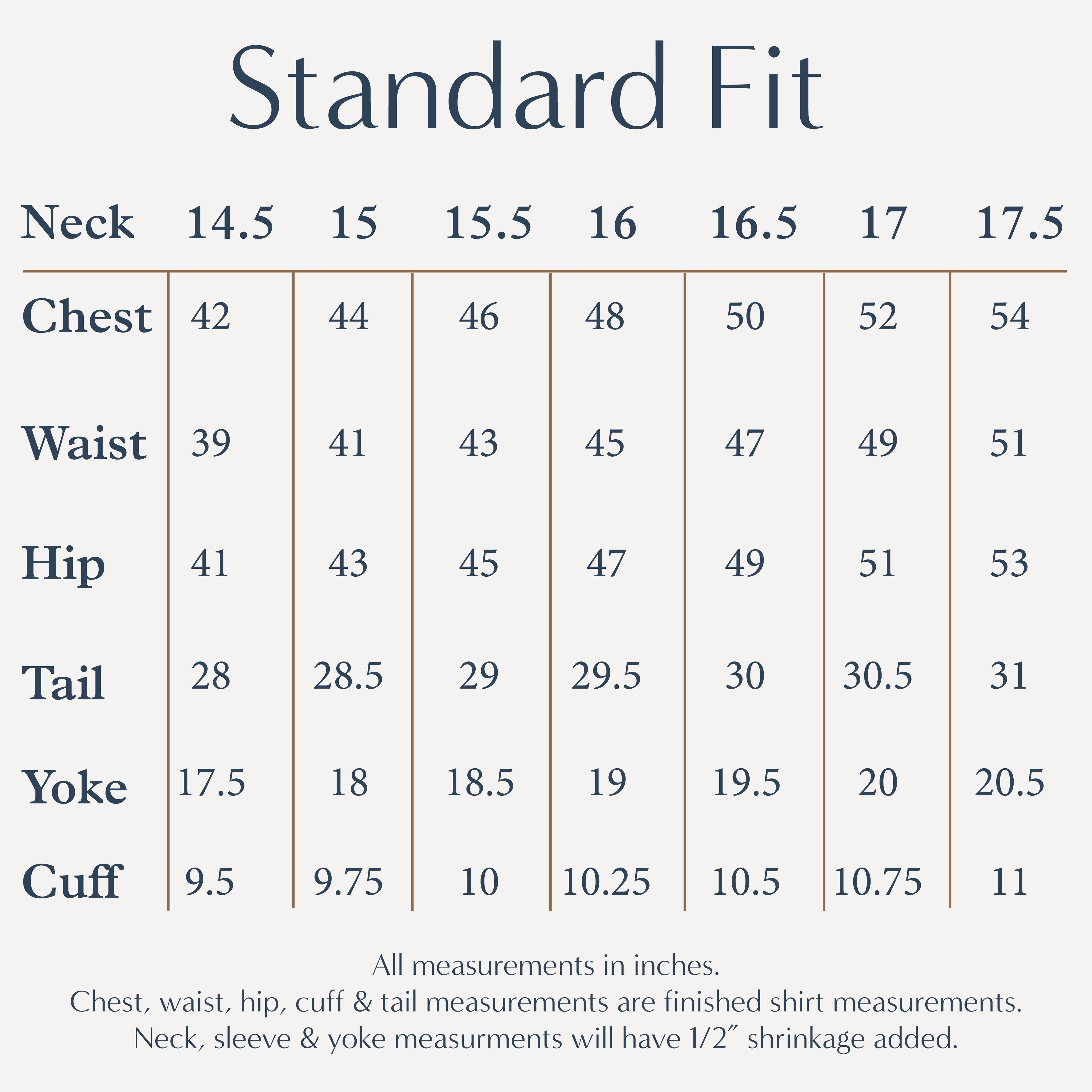 NOTE: Made-to-Order shirts are semi-custom garments and will take 4 to 6 weeks to arrive. In addition, because the shirts are semi-custom, they are a Final Sale with no returns or exchanges. Please be sure you are ordering the correct sizing and fit.
