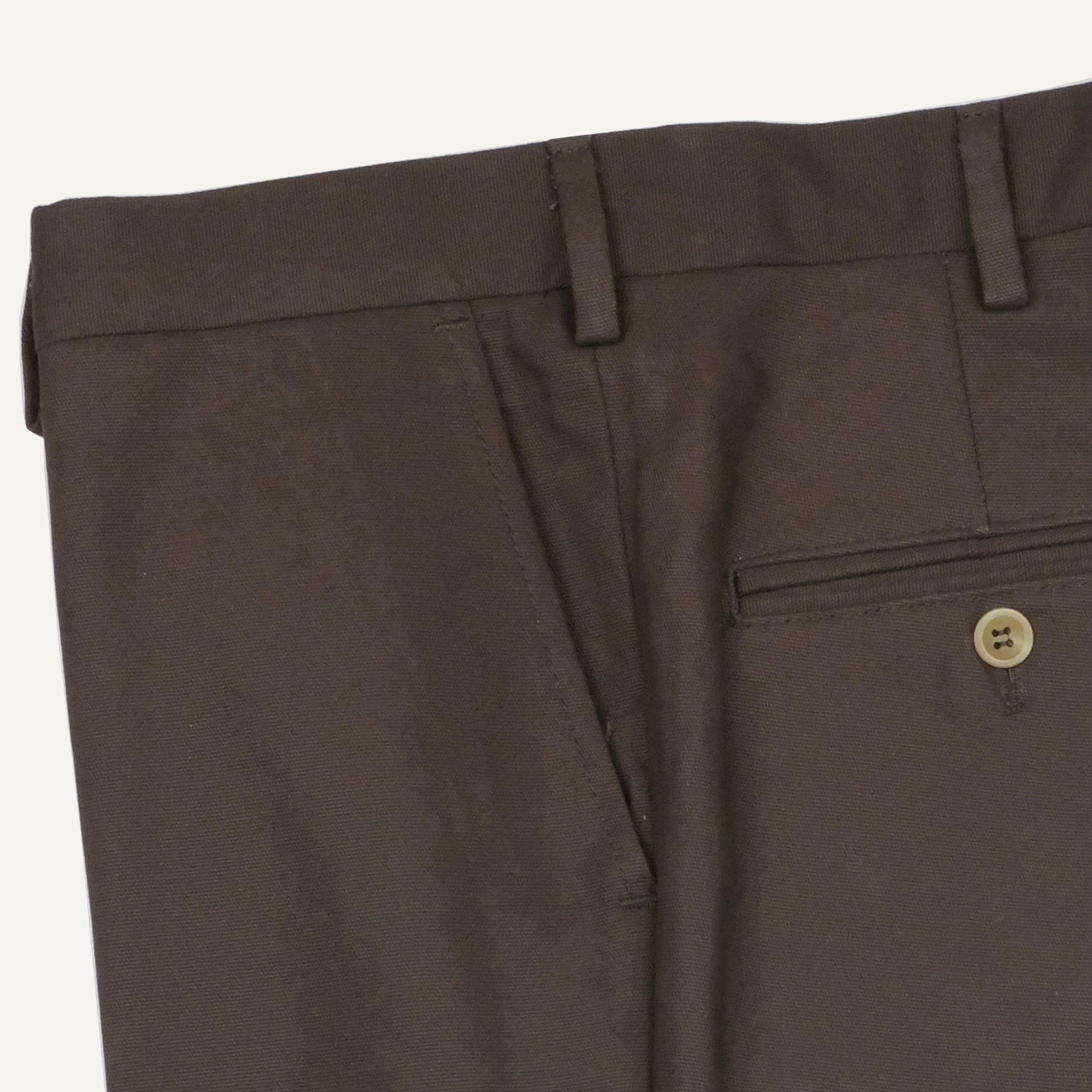 The thought for the ideal "dress up", "dress down" trouser has been top of mind for years. Finally, after many attempts and deciding one fabric versus another, cotton canvas won and for good reason too. Cotton canvas has a lot of the characteristics we like here at Junior's; It's durable, has visual interest and tactile interest with the distinct weave and lastly, it's not too dressy nor too casual. It walks the line perfectly to us, just like patch pockets on a navy suit. The fit, of course, is a big plus too. The proper rise accompanied by a clean leg line down to the appropriate leg opening makes for an above average fit. Take a look at notable traditional clothing book, "Ivy Style" and then give these a try and you'd fit right in on the Penn campus in 1959 as you would today on Market Street in Philadelphia.