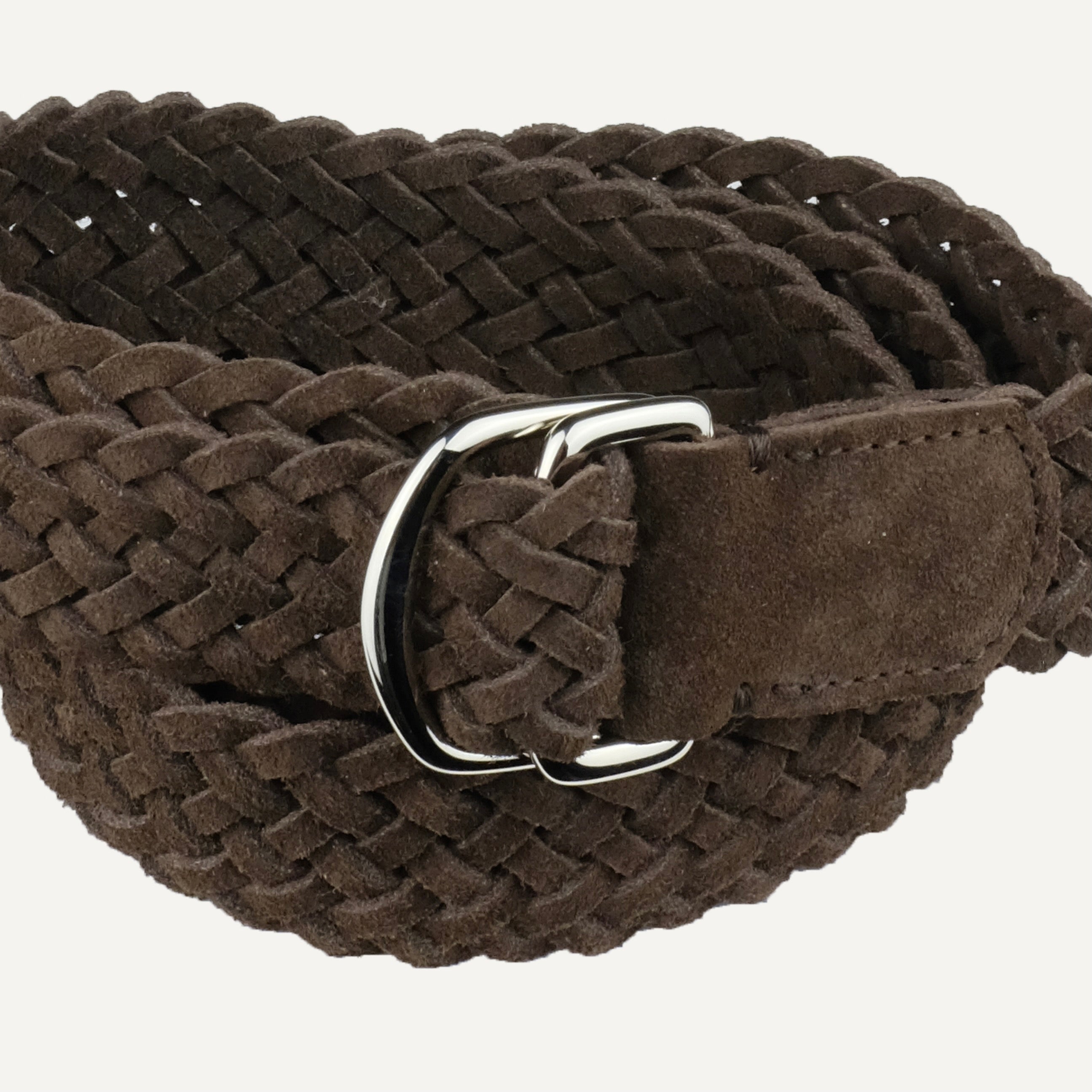 There's no hiding our love for d-ring & o-ring belts here at Junior's. This specific belt has been on the "to-do" list for a long while. A recent Summer visit to Florence, Italy finally saw the vision come together. Working with a small belt maker in the Tuscany region of Italy, we were finally able to add this belt to our lineup and only expect to add more from here. A few objectives when creating this belt were the obvious brown suede but also the slightly more narrow width and the soft almost unconstructed feel of the belt. Check, check and check! Sure, it can seem like a casual belt to most and that is where its strength lies. However, we love to pair this belt with a pair of dress trousers and a tweed sport coat, denim and a madras sport shirt or even a suit and tie if you're feeling rakish.