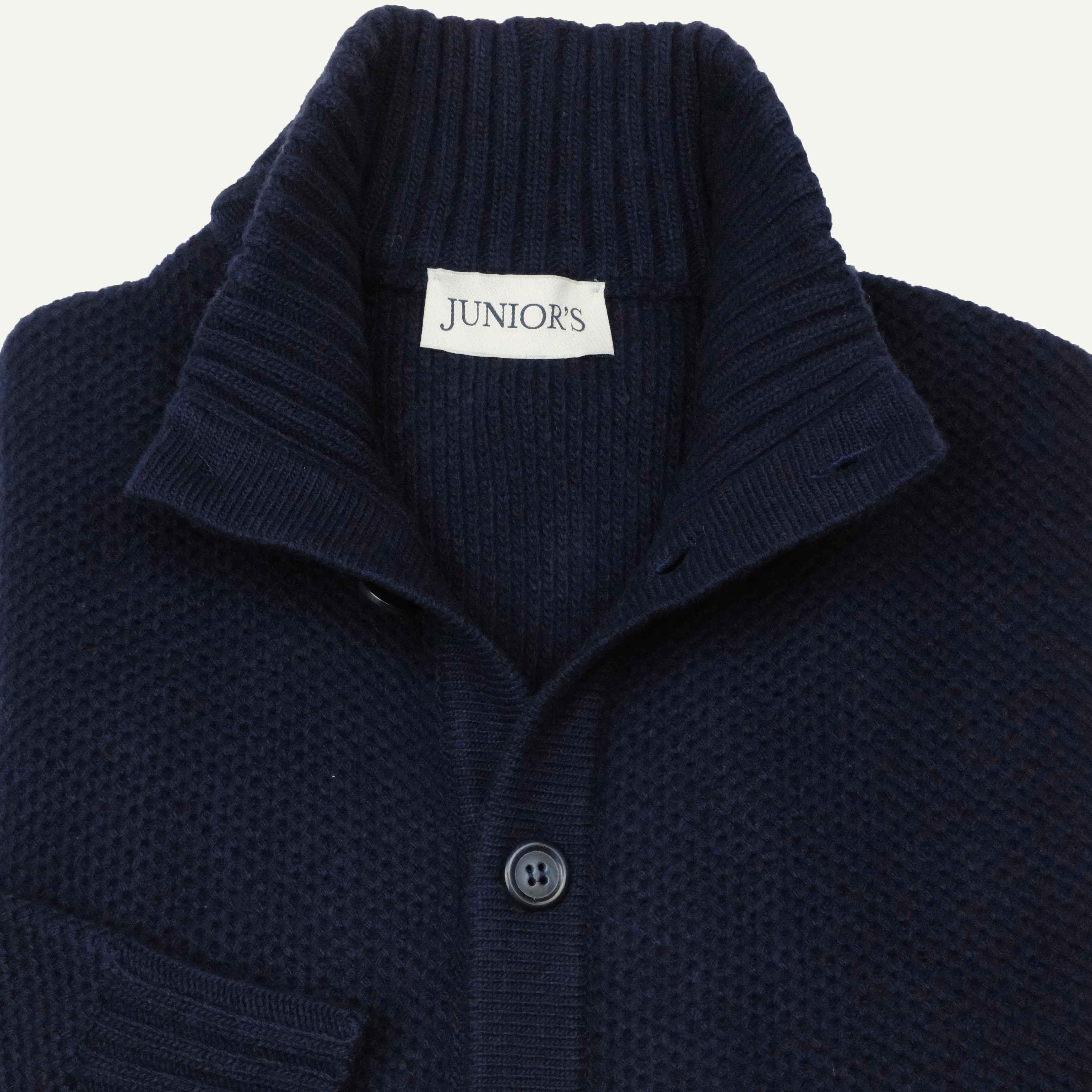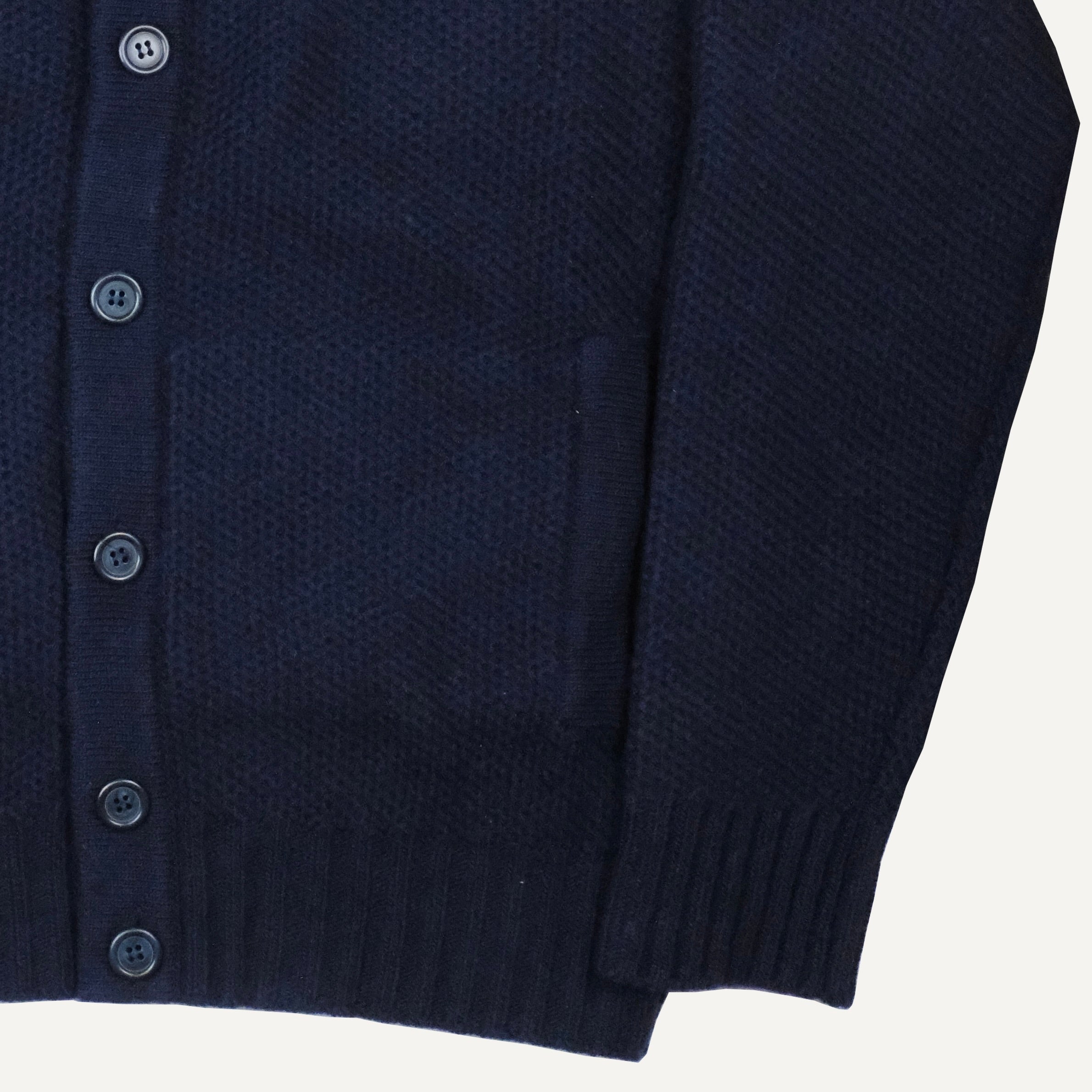 Navy Wool & Cashmere Rice Stitch Mock Neck Cardigan