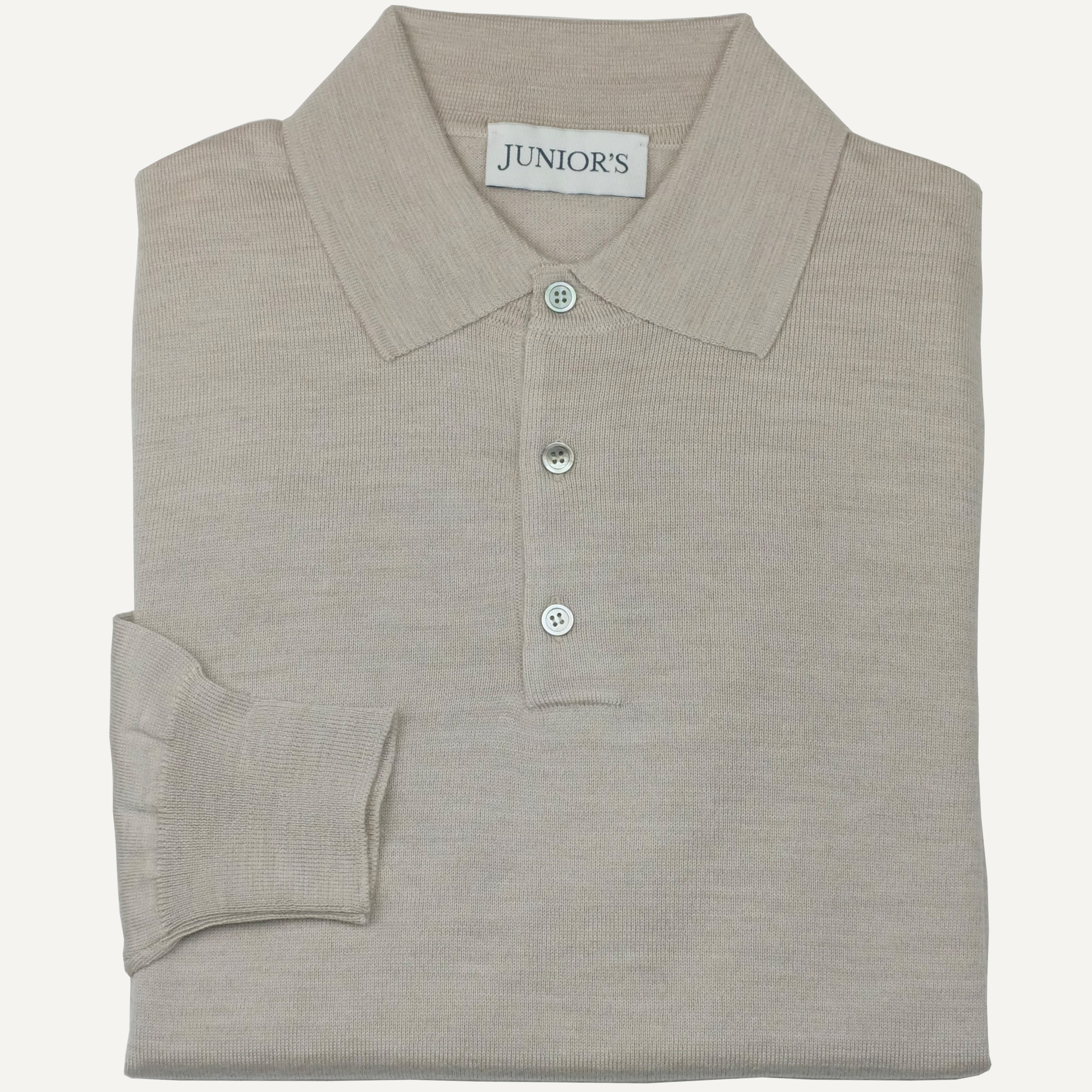When traveling to Italy twice a year, the goal is always to find new & exciting products from accessories to sweaters. Our merino long sleeve polo sweaters are just that! This timeless style is everything we like our knitwear to be. No fuss, classic design, a substantial gauge knit and heirloom quality. Made in Italy for Junior's by a longstanding family owned knitwear maker, our polo sweaters are the first of many collaborations we will have with our Italian partners. Available in rich, subdued, useful colors, we chose this polo sweater because of it's stylishness and ease of wear. These polos can be worn under everything from suit to sport coat for a smart business casual look but then can be layered with an OCBD or worn solo on the weekends and off the clock with canvas trousers or denim.