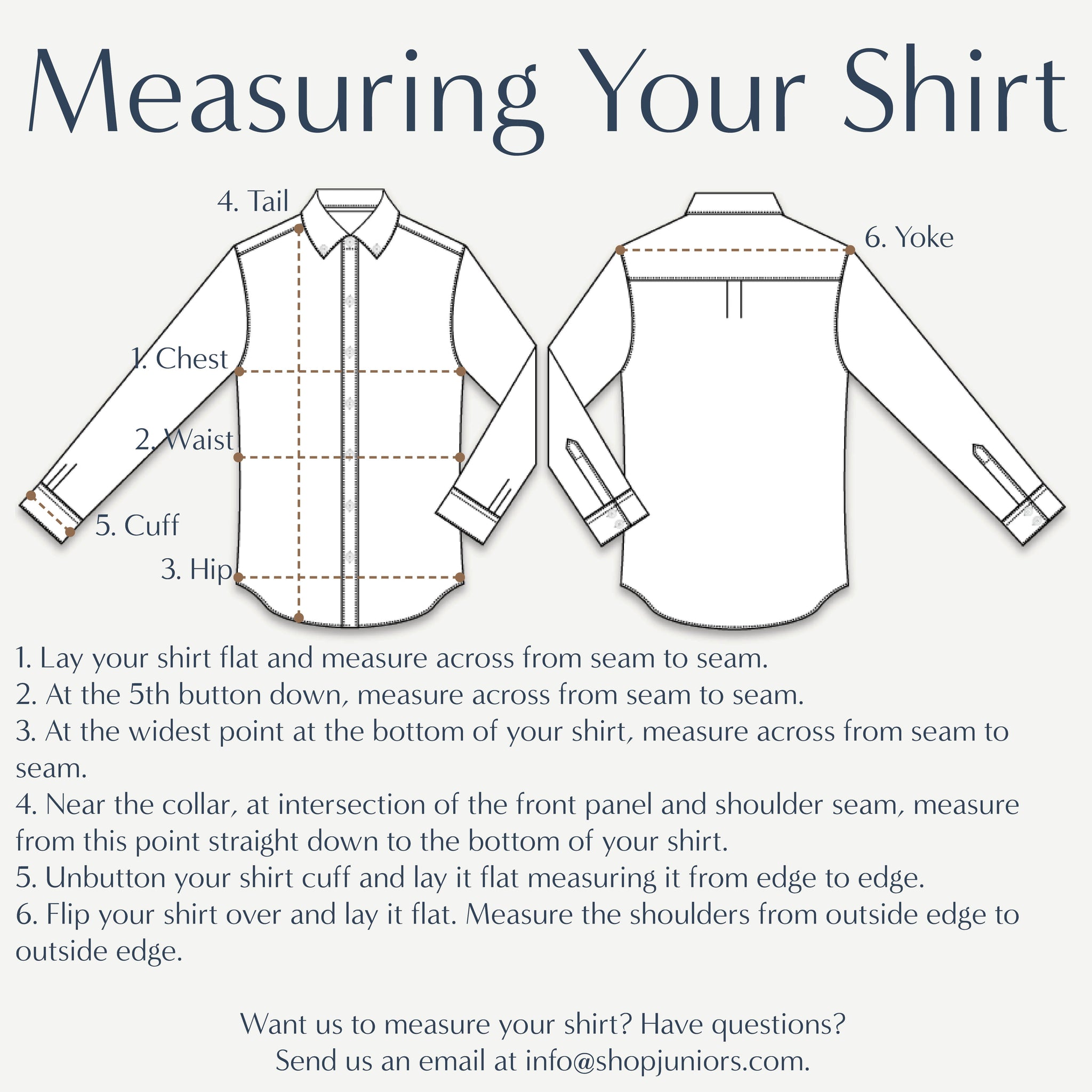 Working with our shirtmaker on the East Coast of the United States, we are proud to present our Junior's Made-to-Order dress shirts. With an objective of building long lasting and timelessly styled wardrobes, it took little thought to expand the offerings into classic broadcloth patterns. Working with our maker, we were able to develop our collar rooted in classic American style along with 3 fits to please multiple generations of button-down enthusiasts. The Standard Fit is our not too full, nor trim, clean fitting shirt that still has room for comfort while not forgetting its roots. For clients who prefer a fit closer to the body while having a properly styled shirt, we offer our Trim Fit. Lastly, our Full Fit is a nod to how the button-down dress shirt became great and how some remember the shirt's origins. Our Junior's button-down features a lightly lined & fused collar, 8-button front, box pleat back, single button rounded cuff and a single rounded pocket.